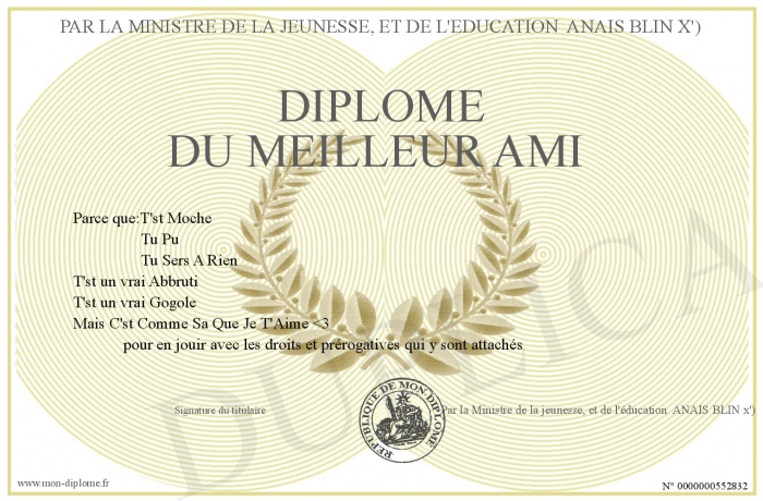 Envoyez par email votre Diplôme du Meilleur Ami personalisé