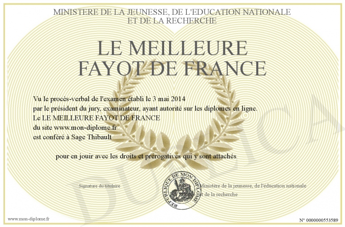 Envoyez par email votre LE MEILLEURE FAYOT DE FRANCE personalisé