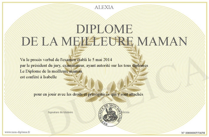 Envoyez par email votre Diplôme de la meilleure maman personalisé