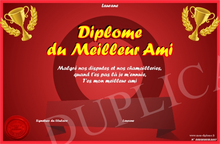 Envoyez par email votre Diplôme du Meilleur Ami personalisé