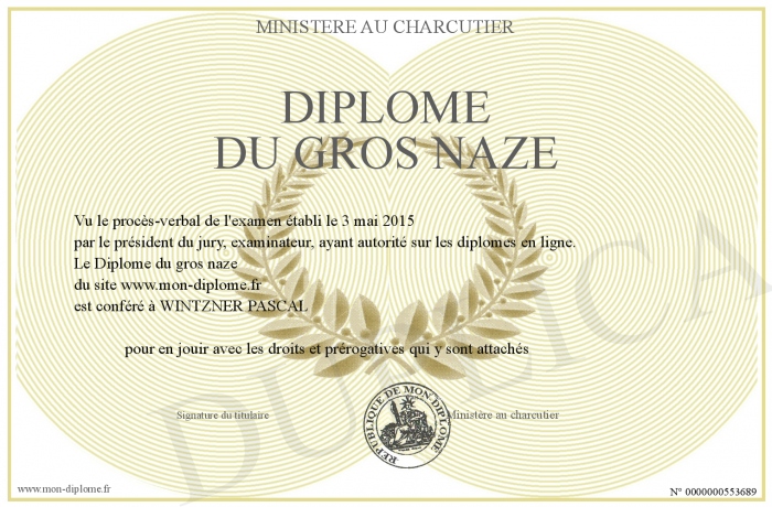 Envoyez par email votre Diplôme du gros naze personalisé