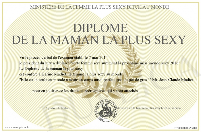 Envoyez par email votre Diplôme de la maman la plus sexy personalisé