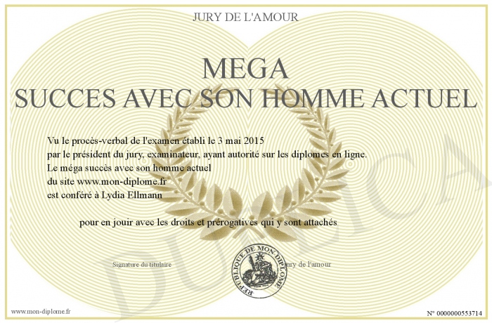 Envoyez par email votre méga succès avec son homme actuel personalisé