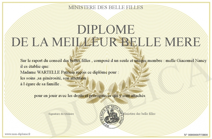 Envoyez par email votre Diplôme de la meilleur belle Mére personalisé