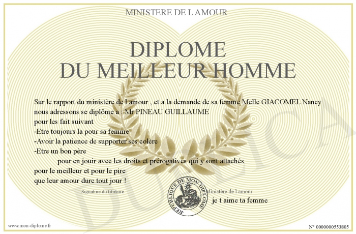 Envoyez par email votre Diplôme du meilleur HOMME personalisé