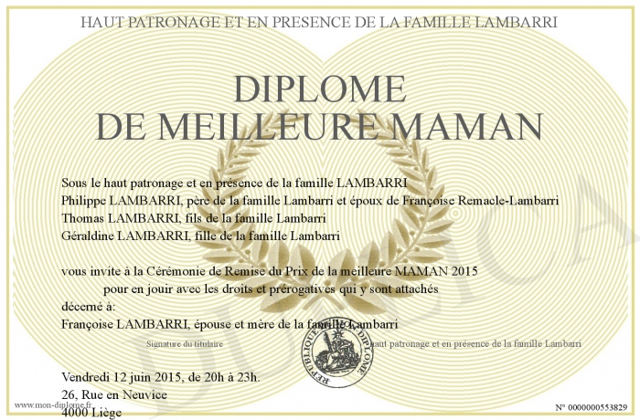 Envoyez par email votre Diplôme de meilleure maman personalisé