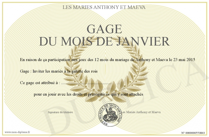 Envoyez par email votre Gage du mois de Janvier personalisé