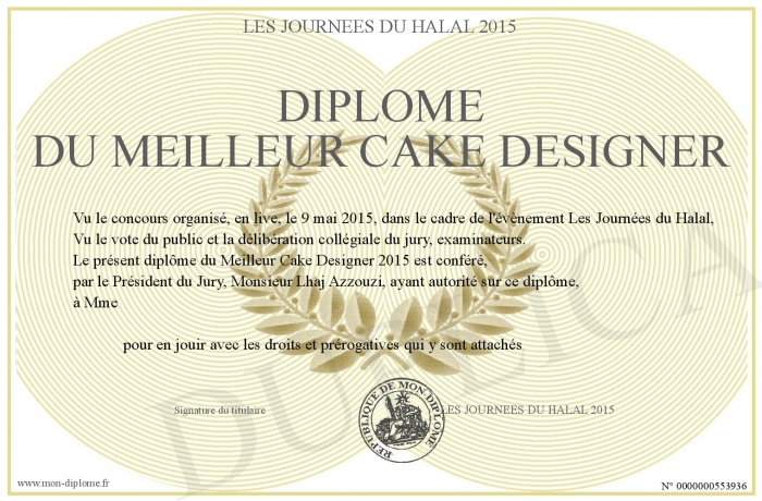 Envoyez par email votre Diplôme du meilleur Cake Designer personalisé