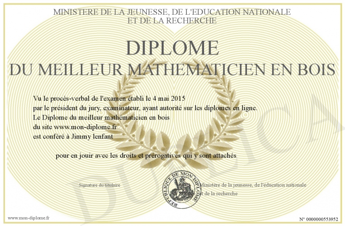 Envoyez par email votre Diplôme du meilleur mathématicien en bois personalisé