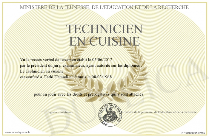 Envoyez par email votre Technicien en cuisine personalisé