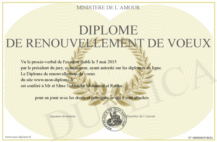 Envoyez par email votre Diplôme de renouvellement de voeux personalisé