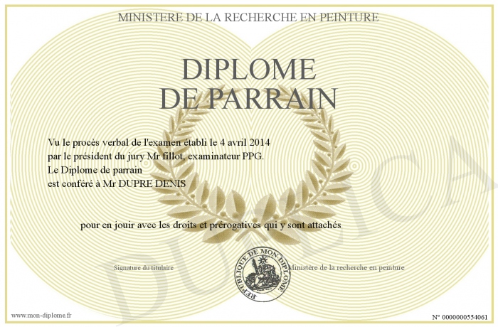 Envoyez par email votre Diplôme de parrain personalisé