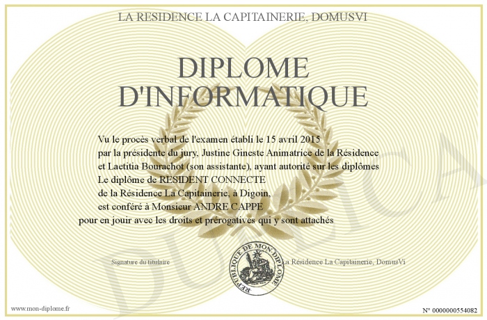 Envoyez par email votre Diplome d'informatique personalisé