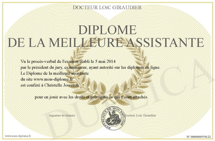 Envoyez par email votre Diplôme de la meilleure assistante personalisé