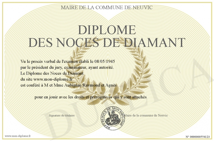 Envoyez par email votre Diplôme des Noces de Diamant personalisé
