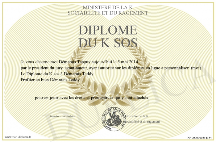 Envoyez par email votre Diplôme du K sos personalisé