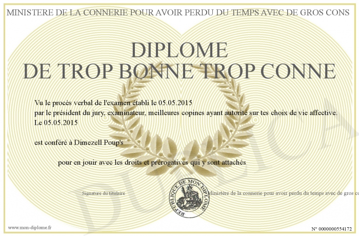 Envoyez par email votre Diplôme de TROP BONNE TROP CONNE personalisé