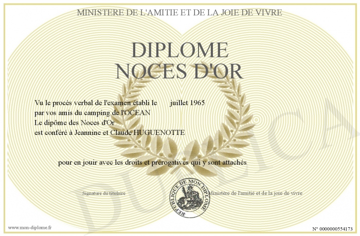Envoyez par email votre diplôme Noces d'or personalisé