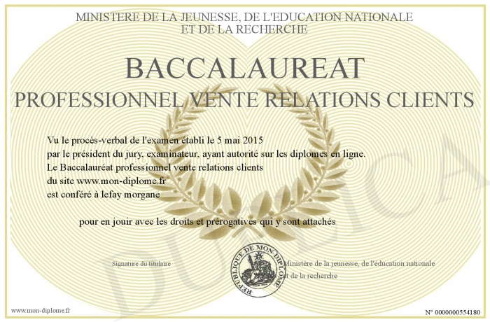 Envoyez par email votre Baccalauréat professionnel vente relations clients personalisé