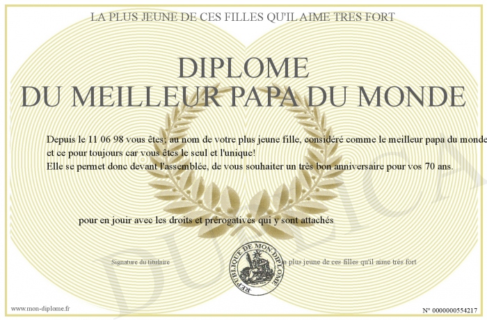 Envoyez par email votre Diplôme du meilleur papa du monde personalisé
