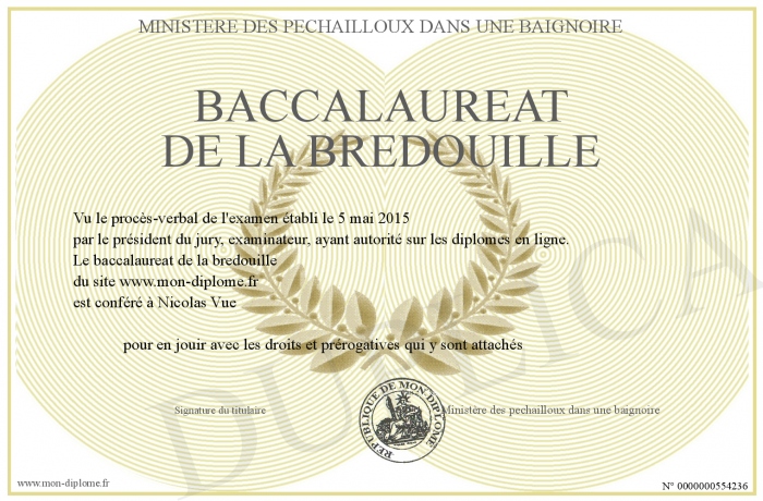 Envoyez par email votre baccalaureat de la bredouille personalisé