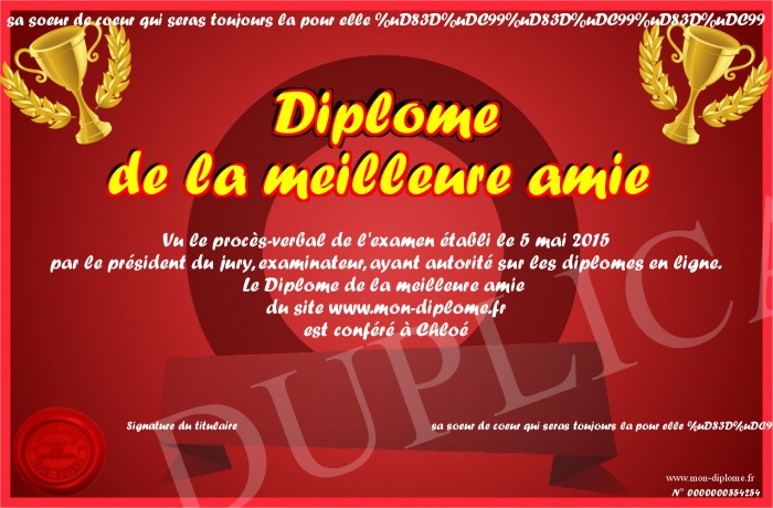 Envoyez par email votre Diplôme de la meilleure amie personalisé