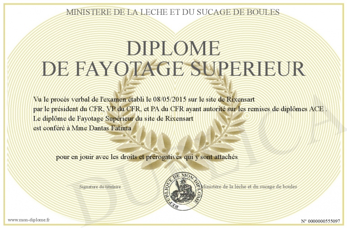 Envoyez par email votre Diplôme de Fayotage Supérieur personalisé