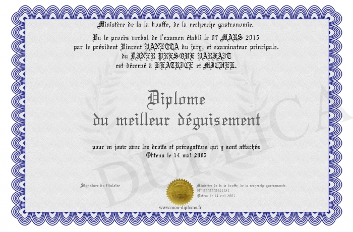 Envoyez par email votre Diplôme du meilleur déguisement personalisé