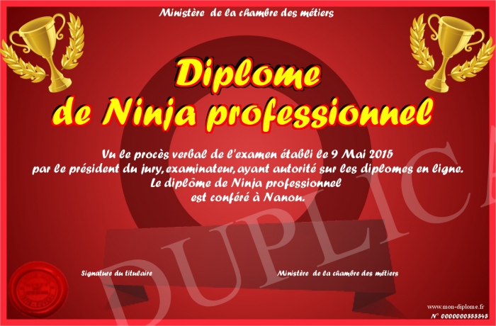 Envoyez par email votre Diplôme de Ninja professionnel personalisé