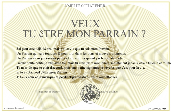 Envoyez par email votre Veux tu être mon Parrain ? personalisé