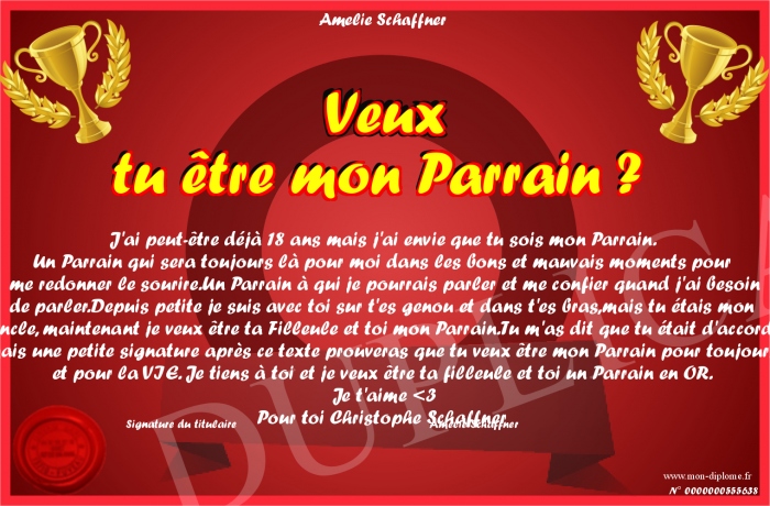 Envoyez par email votre Veux tu être mon Parrain ? personalisé