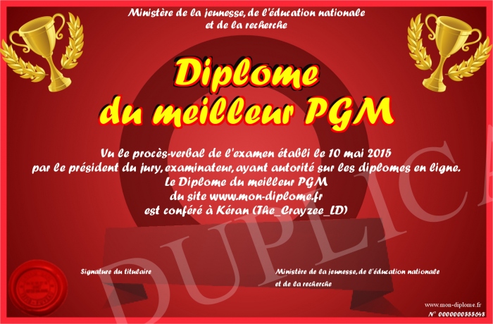 Envoyez par email votre Diplôme du meilleur PGM personalisé