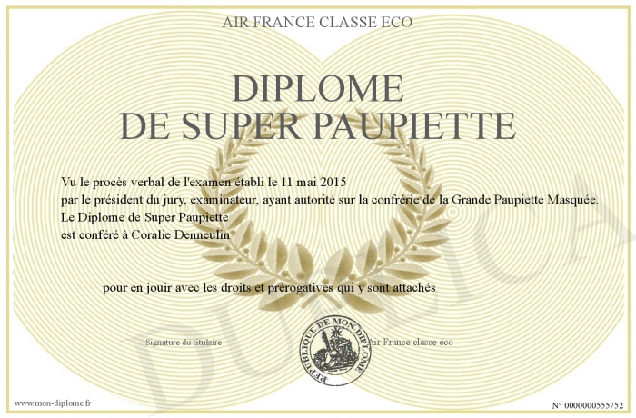 Envoyez par email votre Diplôme de Super Paupiette personalisé