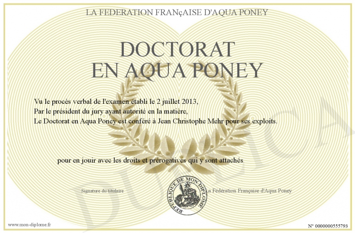 Envoyez par email votre Doctorat en Aqua Poney personalisé