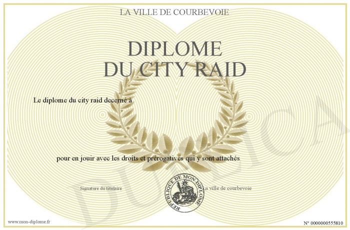 Envoyez par email votre Diplôme du City raid personalisé
