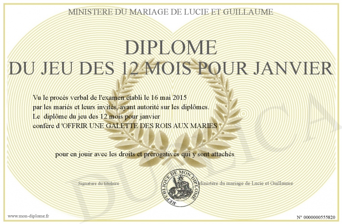 Envoyez par email votre Diplôme du jeu des 12 mois pour janvier personalisé