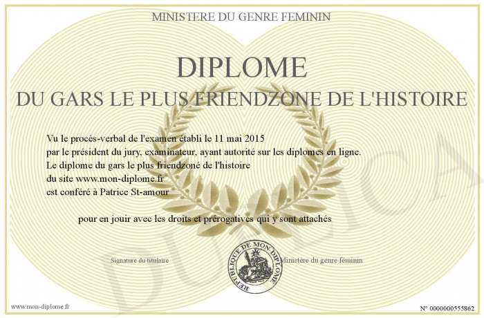 Envoyez par email votre diplôme du gars le plus friendzoné de l'histoire personalisé