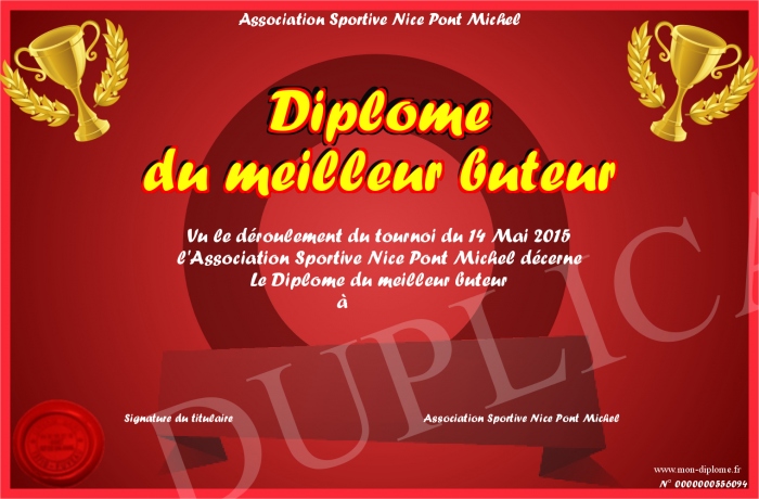 Envoyez par email votre Diplôme du meilleur buteur personalisé