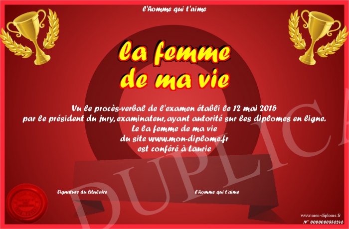 Envoyez par email votre la femme de ma vie personalisé