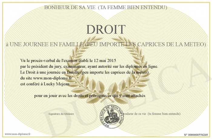 Envoyez par email votre Droit à une journée en famille (peu importe les caprices de la météo) personalisé