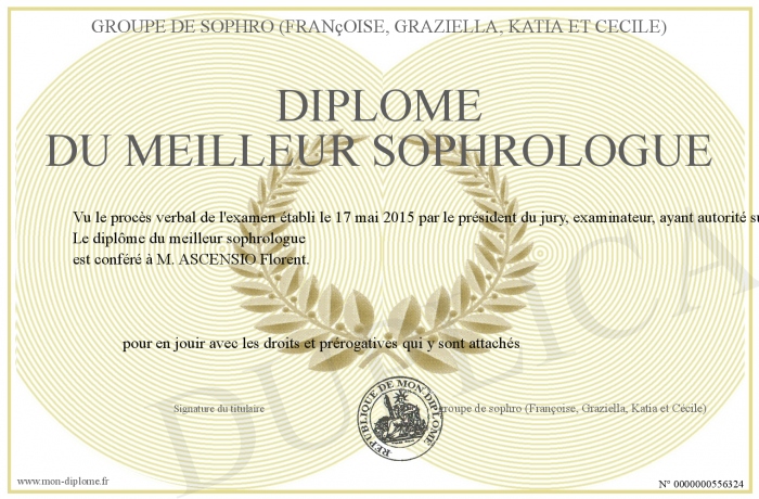 Envoyez par email votre Diplôme du meilleur sophrologue personalisé
