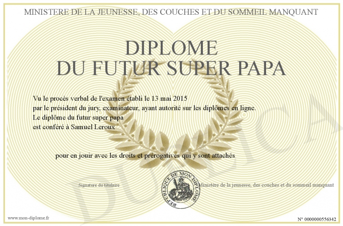 Envoyez par email votre Diplôme du futur super papa personalisé
