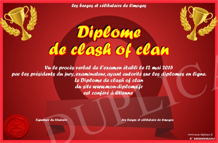 Envoyez par email votre Diplôme de clash of clan personalisé