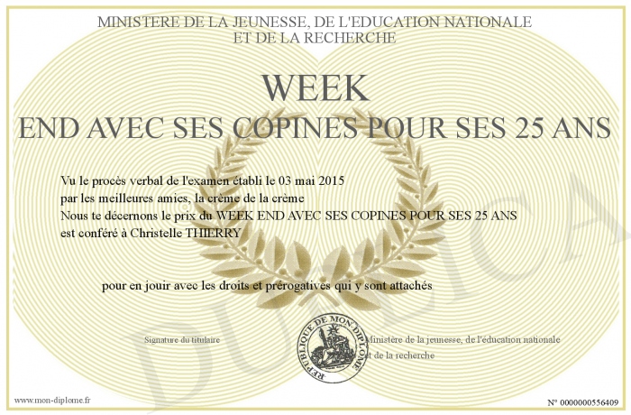 Envoyez par email votre WEEK END AVEC SES COPINES POUR SES 25 ANS personalisé
