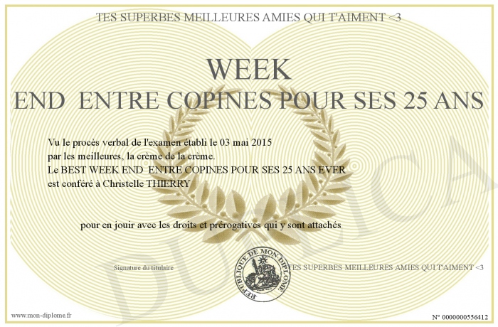 Envoyez par email votre WEEK END ENTRE COPINES POUR SES 25 ANS personalisé