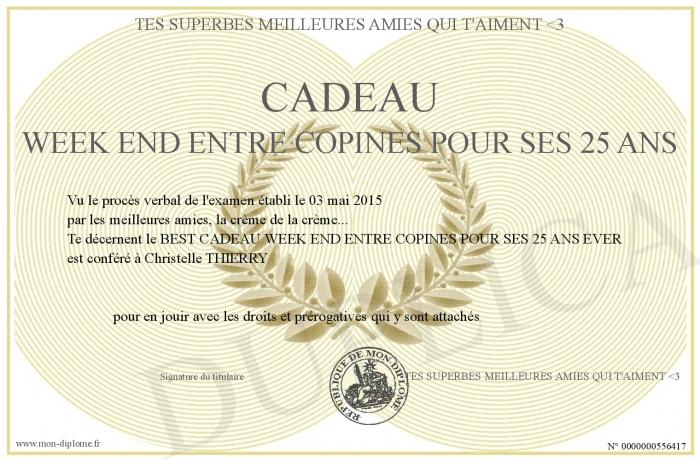 Envoyez par email votre CADEAU WEEK END ENTRE COPINES POUR SES 25 ANS personalisé