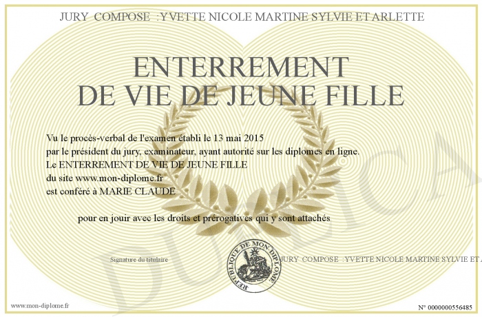 Envoyez par email votre ENTERREMENT DE VIE DE JEUNE FILLE personalisé
