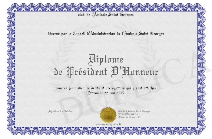 Envoyez par email votre Diplôme de Président D'Honneur personalisé