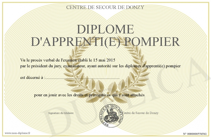 Envoyez par email votre Diplôme d'apprenti(e) pompier personalisé