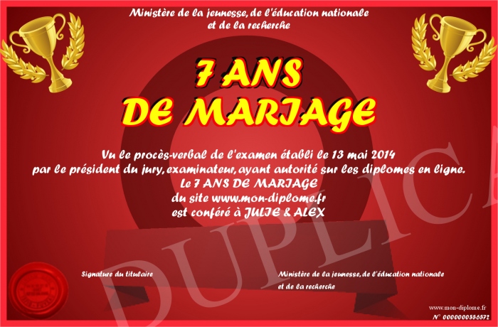Envoyez par email votre 7 ANS DE MARIAGE personalisé